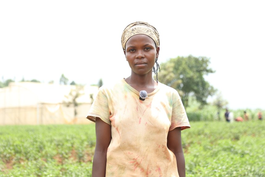 Liliane Tuyishimire, one of the workers on the farm, says her monthly earnings have enabled her to invest in small livestock and improve her family’s welfare