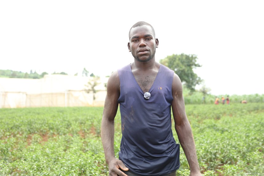 Siborurema Jean d’Amour says the income from his job on the farm has helped him start small livestock farming, strengthening his journey toward financial independence