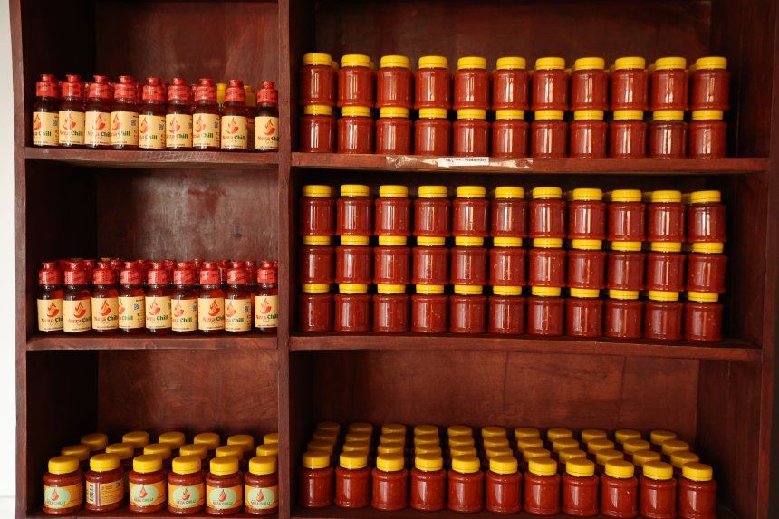 In her small processing workshop located in Runda, Shakira produces three types of chili sauce: Neza Chili, Neza Chili Oil and Neza Hits.